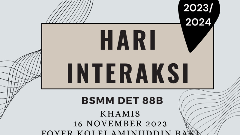 Assalamualaikum dan Salam sejahtera semua. Pada 18 November 2023, BSMM DET88H Sesi 2023/2024 telah mengadakan Hari Interaksi bersama-sama ahli baru dan ahli sesi lepas …