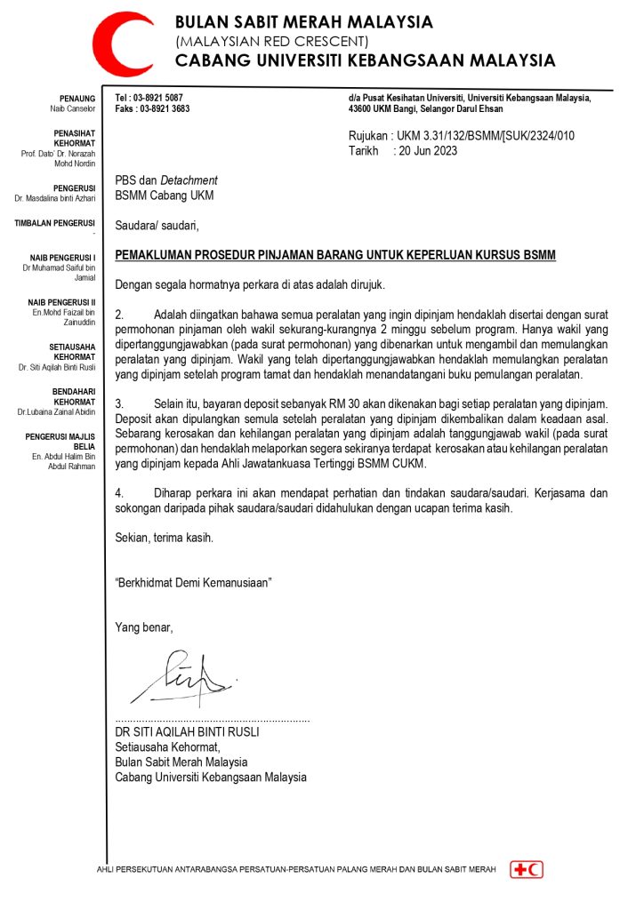 SURAT PEMAKLUMAN PROSEDUR PINJAMAN ASET PKU