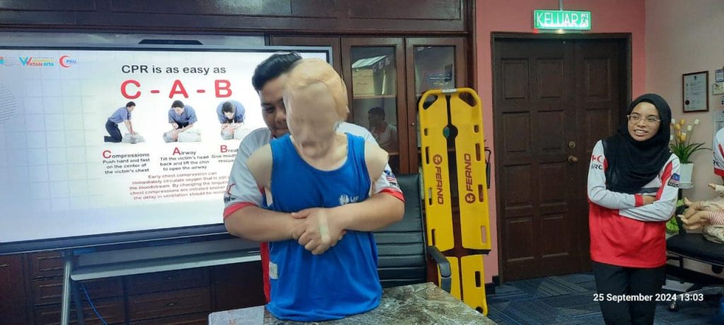 Satu sesi taklimat dan praktikal serta soal jawab bantuan perubatan telah diadakan pada 25 September 2024 oleh Dr Mohd Najid selaku Pegawai Perubatan BSMM/PKU kepada pemudahcara-pemudahcara BSMM, bertempat di bilik mesyuarat PKU.