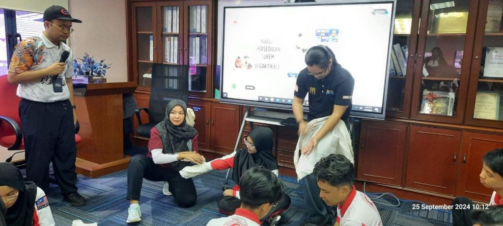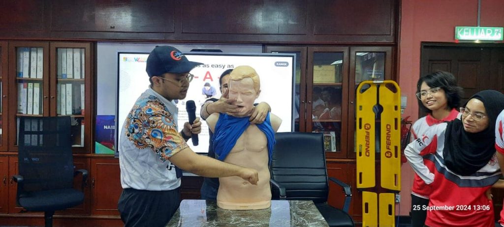 Satu sesi taklimat dan praktikal serta soal jawab bantuan perubatan telah diadakan pada 25 September 2024 oleh Dr Mohd Najid selaku Pegawai Perubatan BSMM/PKU kepada pemudahcara-pemudahcara BSMM, bertempat di bilik mesyuarat PKU.
