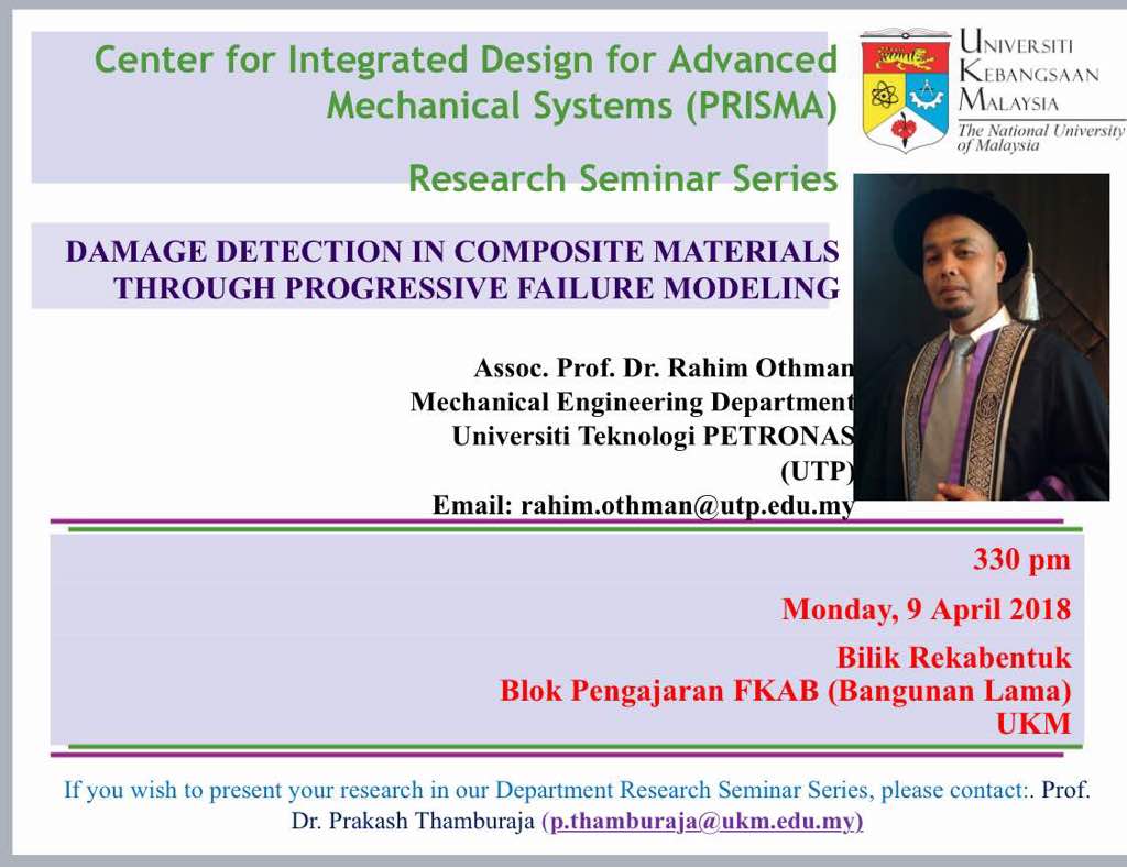 Speaker: Dr. Safaa Najah (Faculty of Information Sciences and Engineering, Management and Science University) - Title: Damage Detection in Composite Materials Through Progressive Failure Modeling