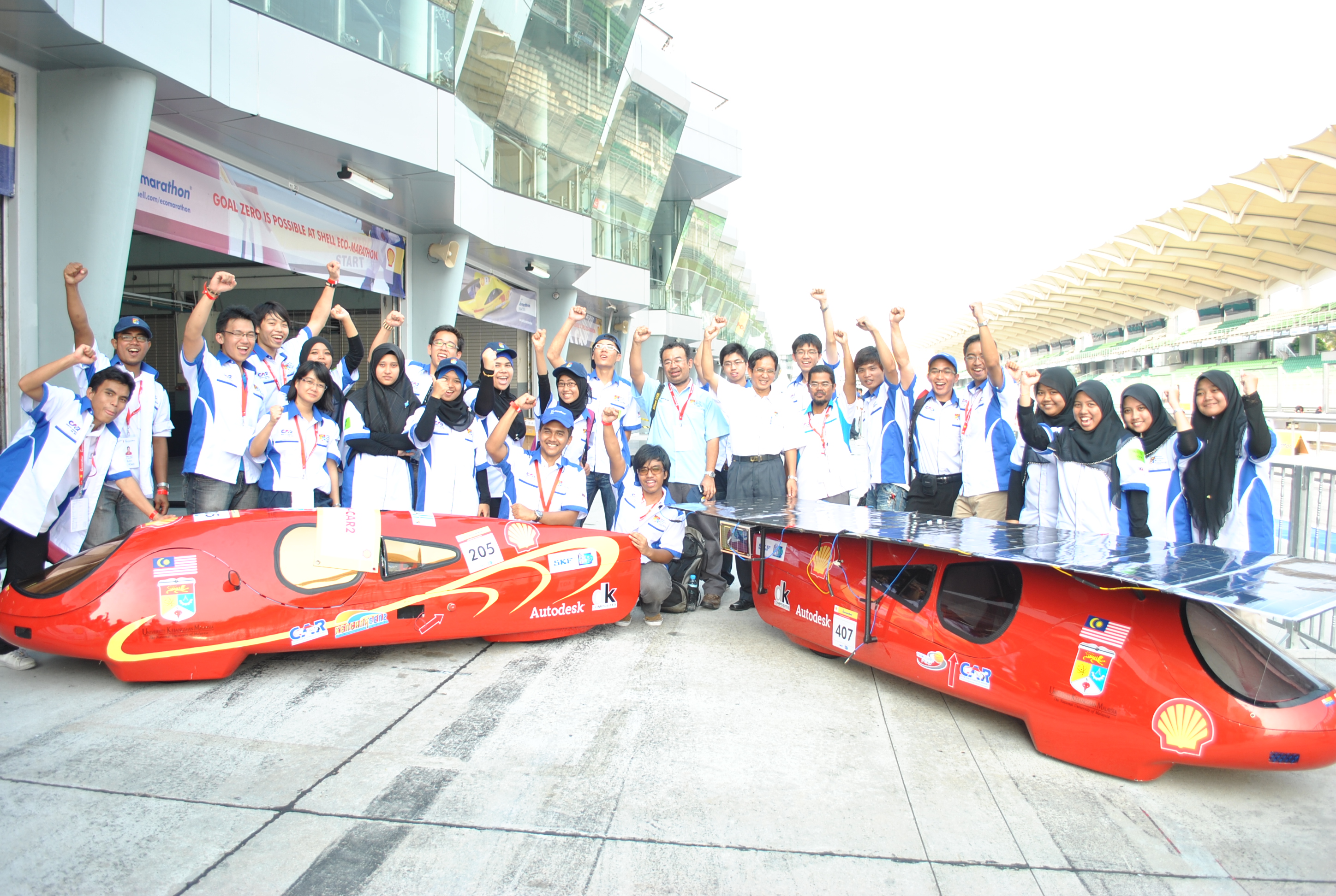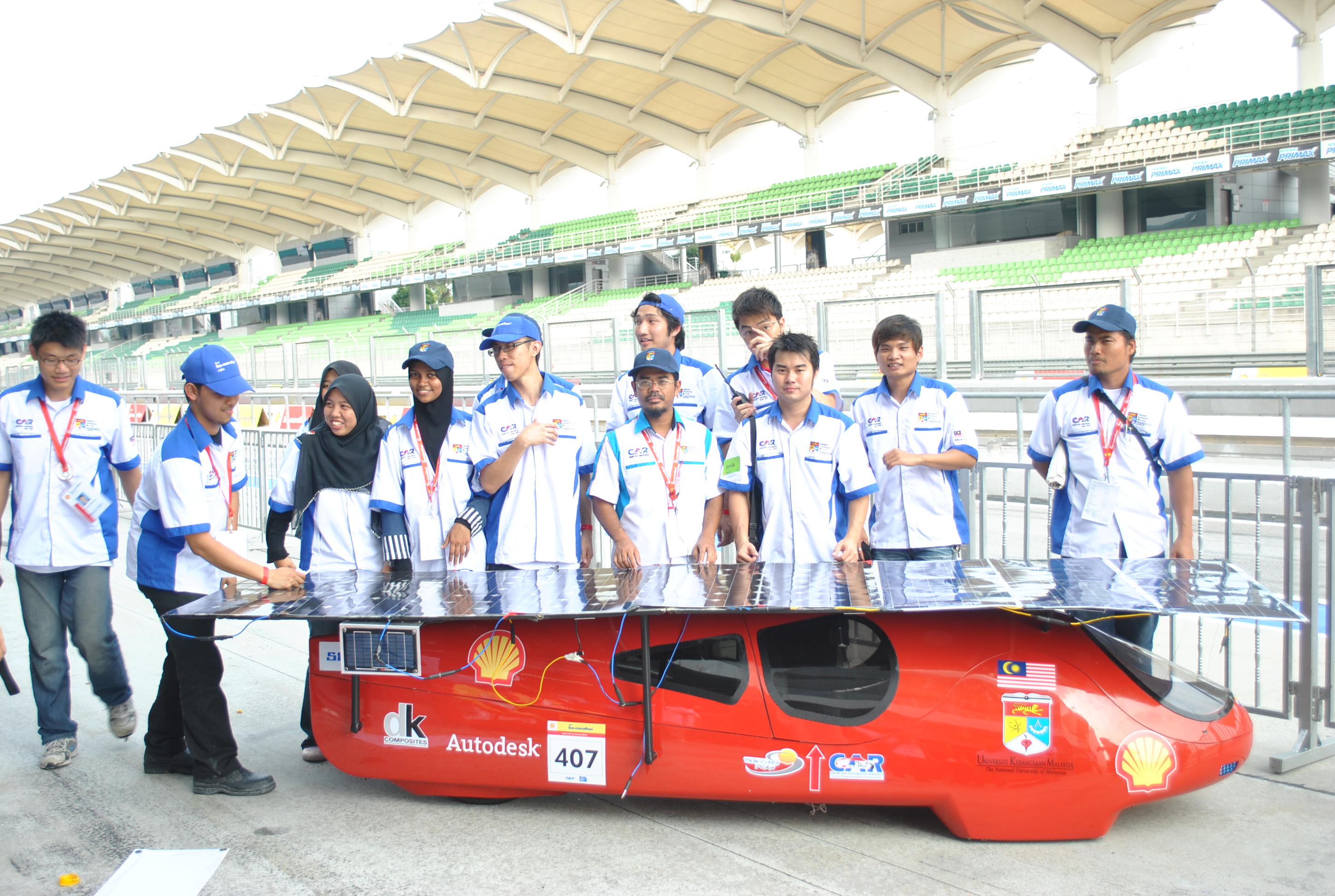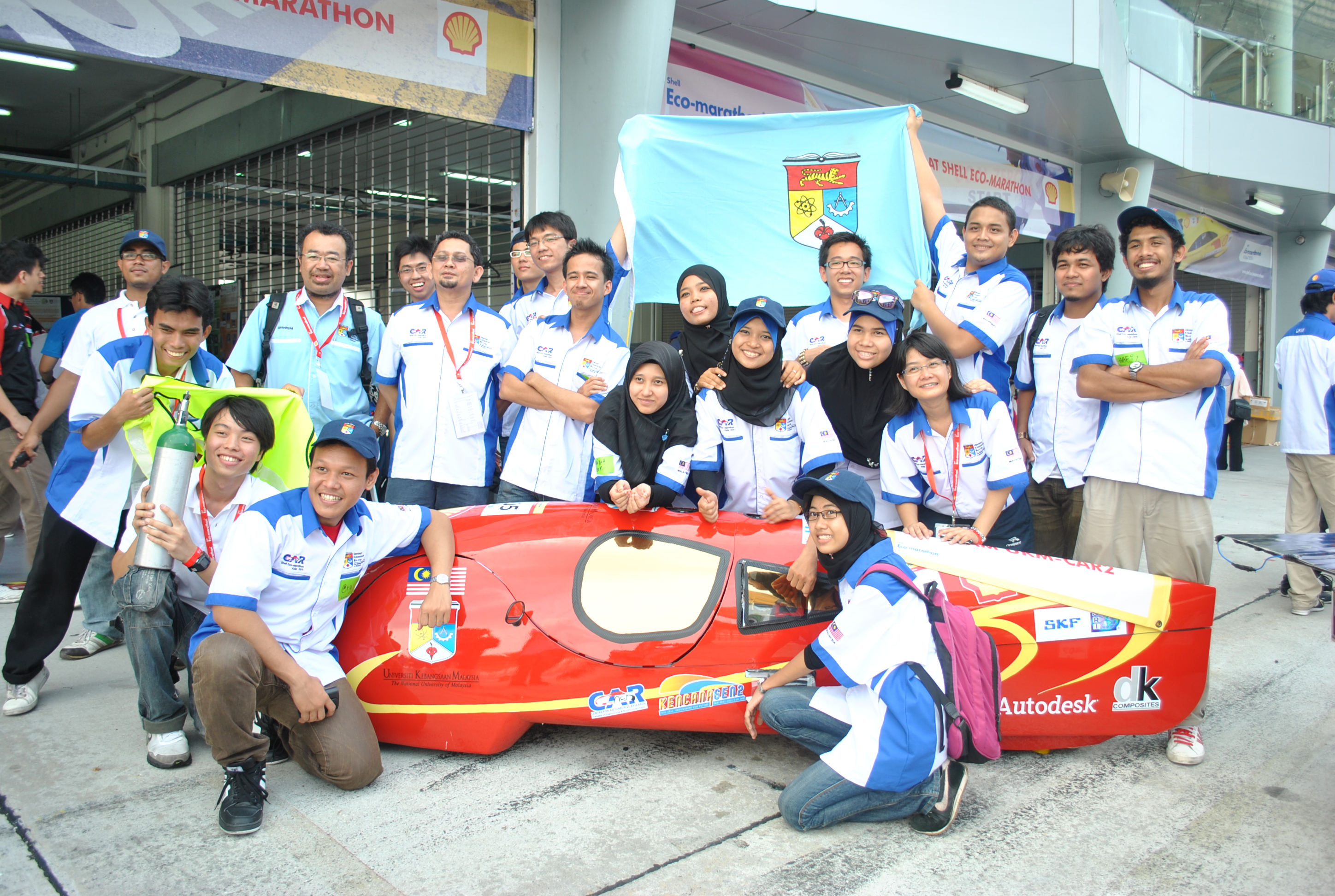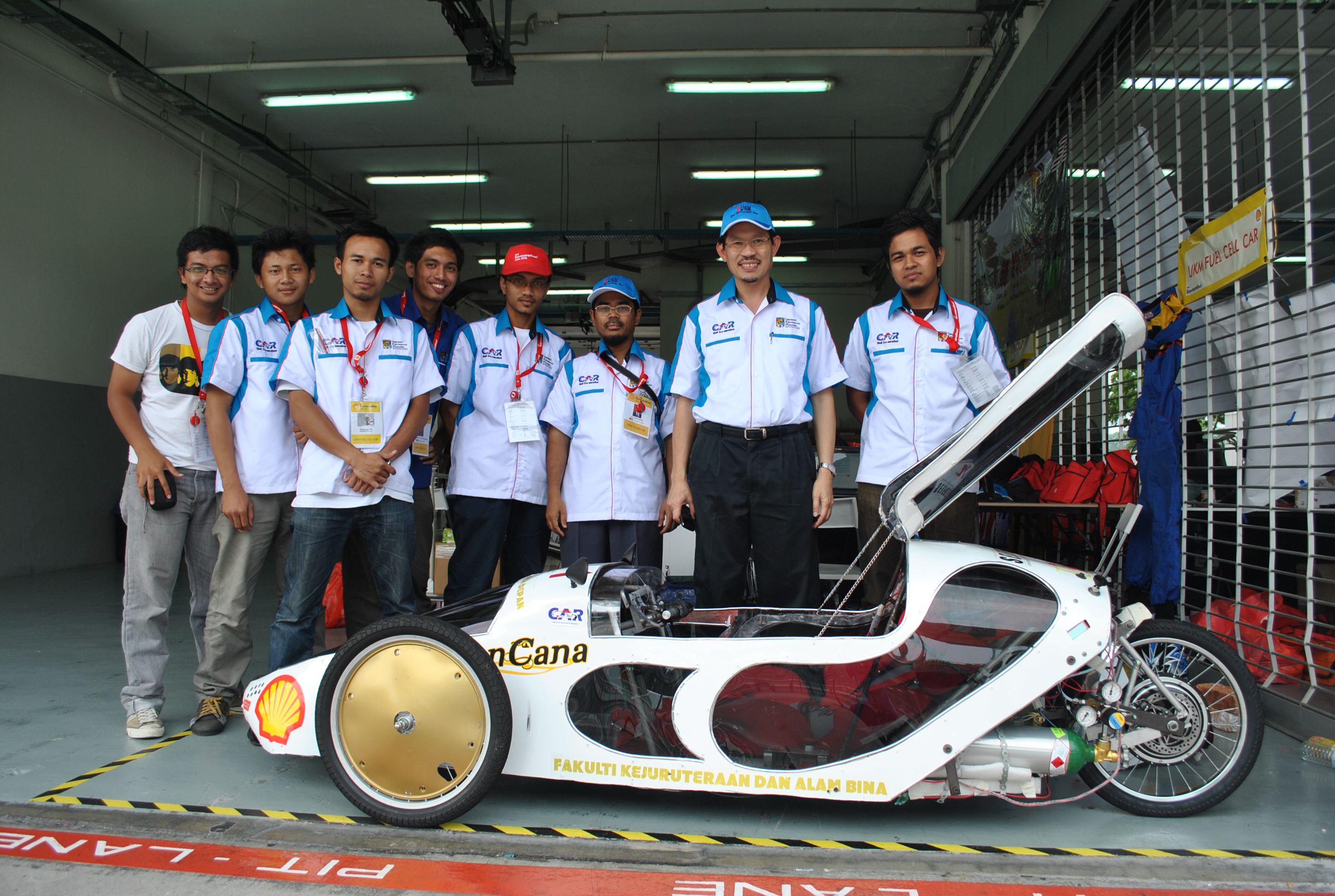 Untuk penyertaan dalam Shell Eco-Marathon Asia (SEM) 2011, pasukan UKM telah menghantar dua pasukan/kenderaan, iaitu solar dan bahan api sel dalam kategori prototaip. Dalam cabaran ini, kami telah membangunkan reka bentuk kereta yang baru berdasarkan konsep titisan air bagi mencapai profil aerodinamik yang lebih baik. Dengan reka bentuk aerodinamik yang baik, ia boleh mengoptimumkan penggunaan tenaga dan bahan api pada kereta. Kedua-dua badan-badan kereta ini diperbuat daripada komposit serat karbon yang akan membuat kereta lebih kukuh dan lebih ringan daripada bahan-bahan lain. Dari segi rangka untuk sistem roda depan/belakang, ia dibuat dari aluminium aloi dengan kekuatan lebih baik dan yang paling ringan. Di samping itu, sistem ini untuk kedua-dua kereta juga telah ditala dengan betul untuk prestasi yang optimum semasa perlumbaan.