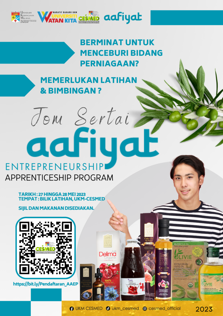 ADAKAH ANDA BERMINAT UNTUK BERNIAGA ? ANDA MEMERLUKAN BIMBINGAN DARI MENTOR BERPENGALAMAN KAMI SEDIAKAN KOMUNITI PERNIAGAAN KEPADA ANDA JOM SERTAI PROGRAM AAFIYAT ENTREPRENEURSHIP APPRENTICE PROGRAM