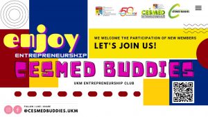- Penubuhan Kelab CESMED Buddies adalah untuk membantu pelajar yang berminat menjalankan kegiatan keusahawanan. Melalui kelab ini, pelajar berpeluang terlibat secara langsung dalam aktiviti keusahawanan melalui idea mereka baik dari segi pengurusan serta kemajuan perniagaan. Melalui pembelajaran teori, ianya akan ditransformasikan menjadi praktikal selain berpeluang mengikuti sesi bimbingan yang dipantau oleh UKM-CESMED bermula daripada pembentangan idea sehingga perniagaan dapat berkembang maju.