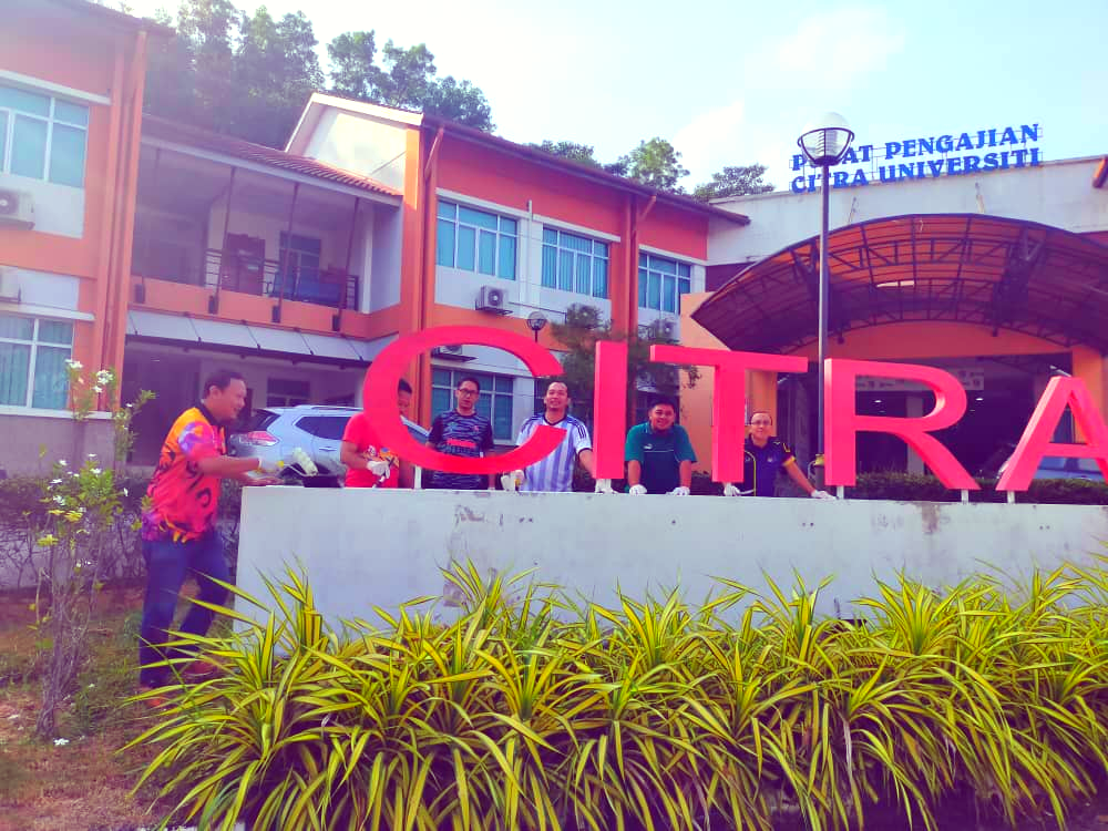 The line of PPCU Administration employees put up an admirable effort by cleaning, polishing, and painting the landmark to improve the surroundings and reputation of CITRA UKM.