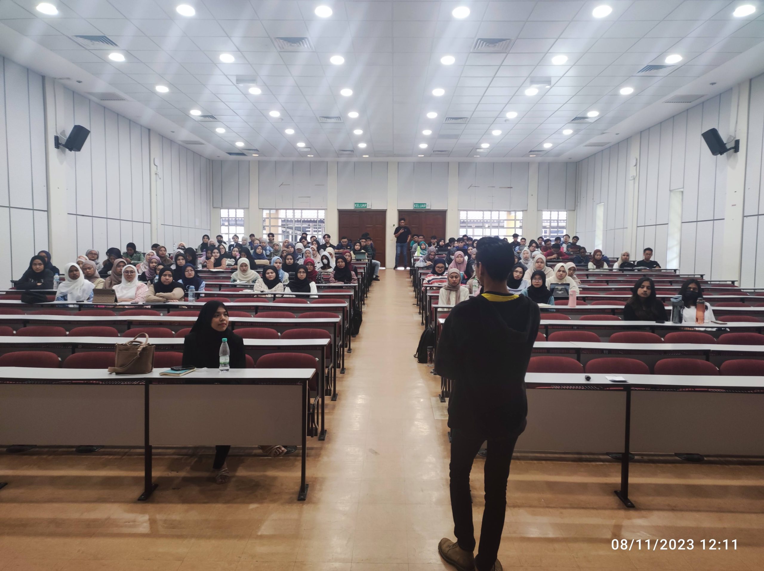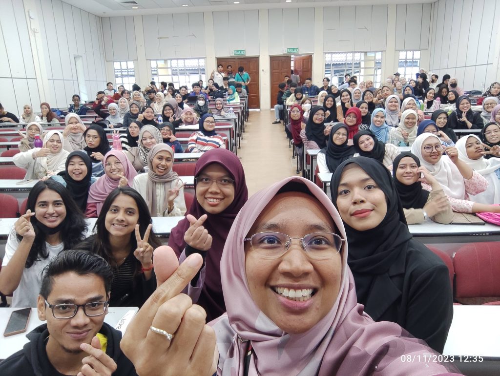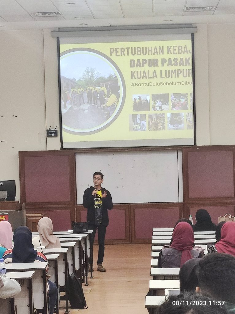 A total of 150 students who took the course LMCR1102 Volunteering Service from 3 different sets gathered to hear the sharing of two of Youth Volunteer Icons at the DK43.102 TAMS Lecture Hall. This course is taught by Dr. Wardah Mustafa Din & Dr Nurul Hanis Aminuddin Jafry, and is a C5 elective course offered to expose students to volunteer work & service.