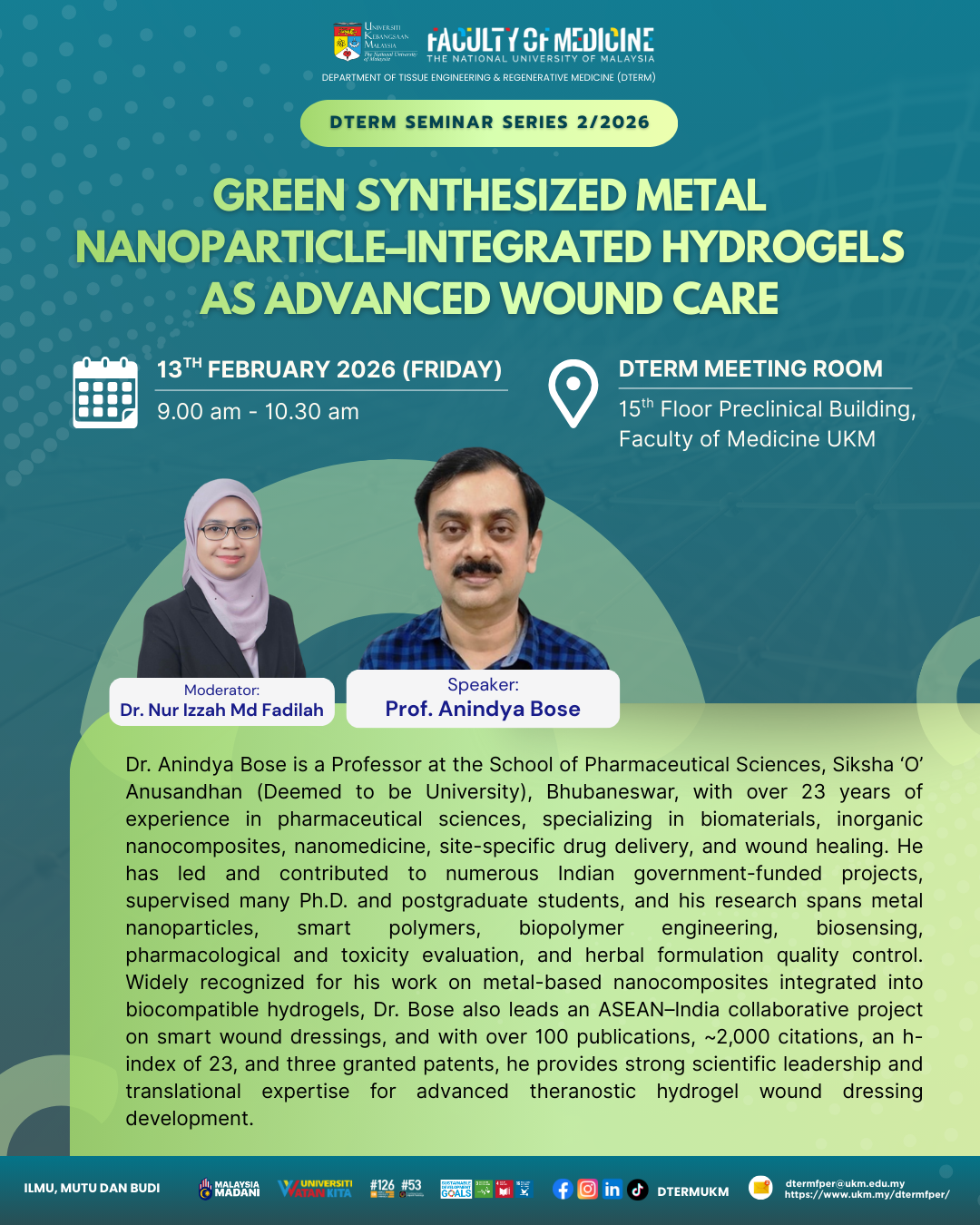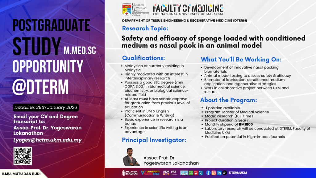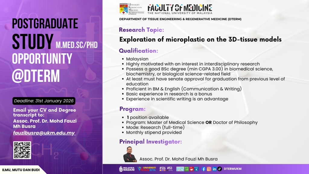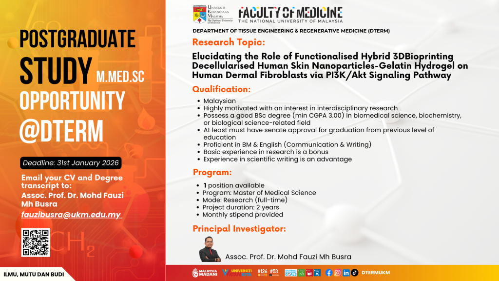 At DTERM, we strive to become a leading department that provide the facility and resources for tissue engineering and regenerative medicine research.