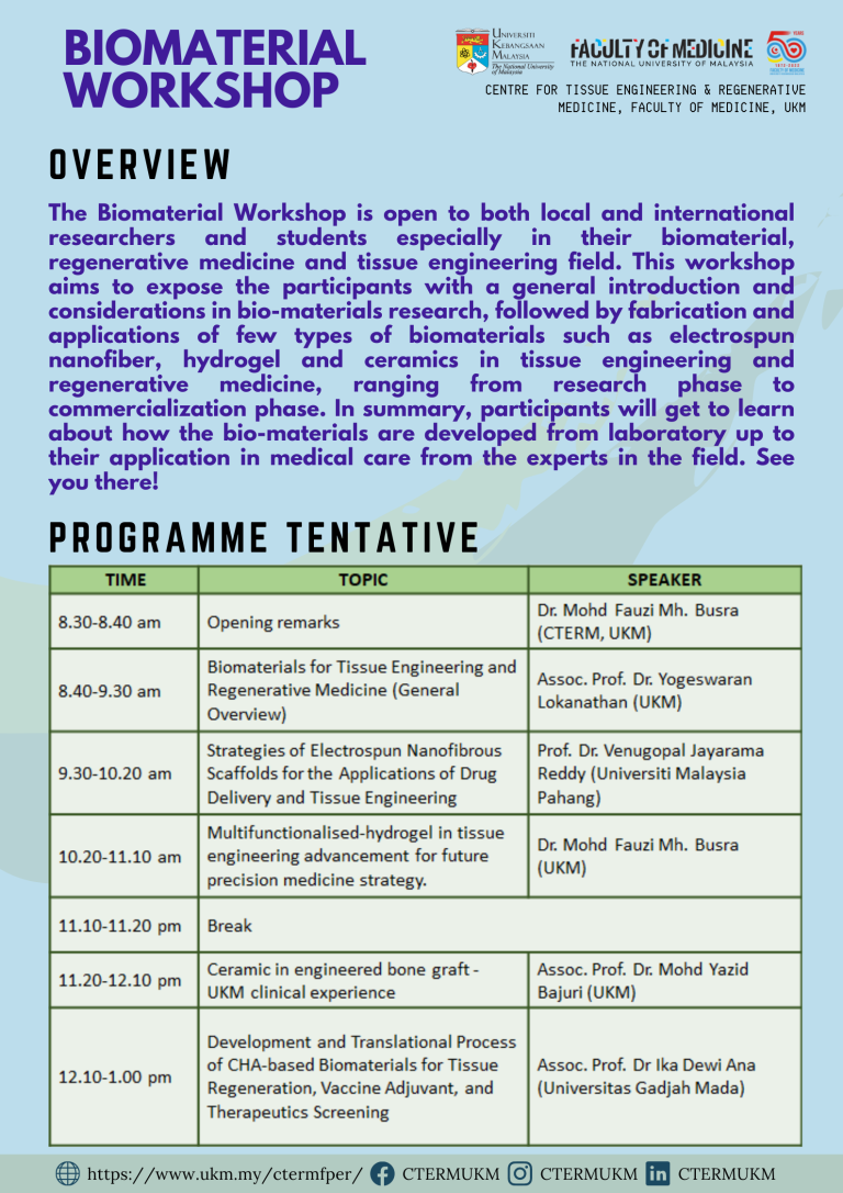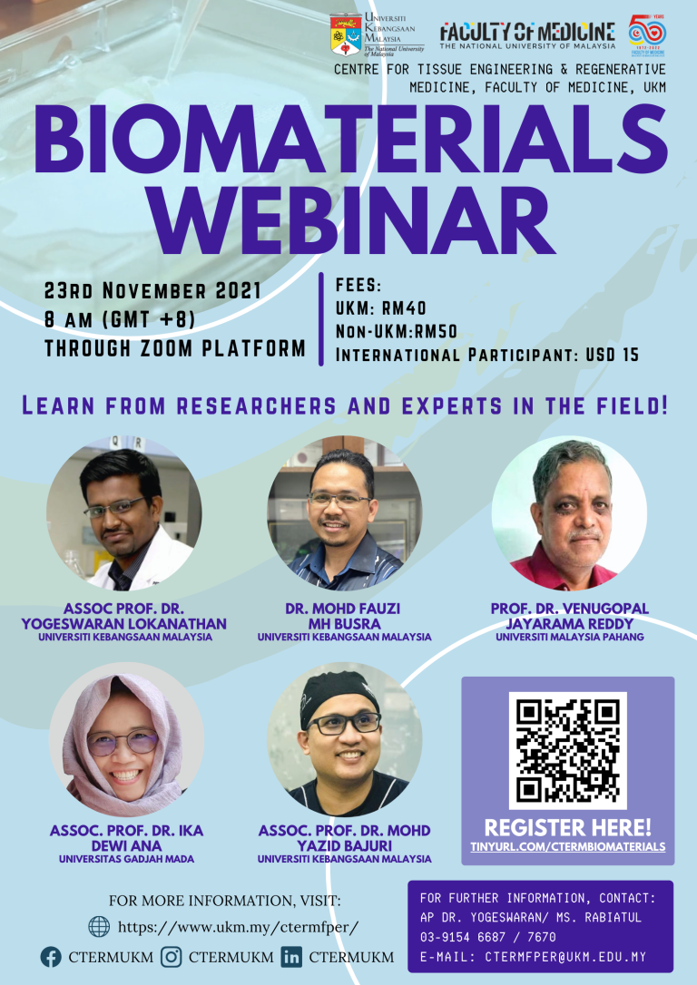 CTERM will be organizing a virtual “BIOMATERIAL WEBINAR” in November! For those who are interested, you may get yourself registered thru the link below.