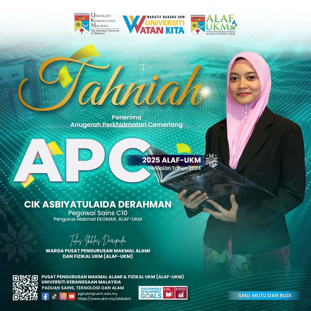 Warga ALAF-UKM mengucapkan setinggi-tinggi tahniah dan syabas kepada kakitangan ALAF-UKM yang telah menerima Anugerah Perkhidmatan Cemerlang (APC) UKM 2025.