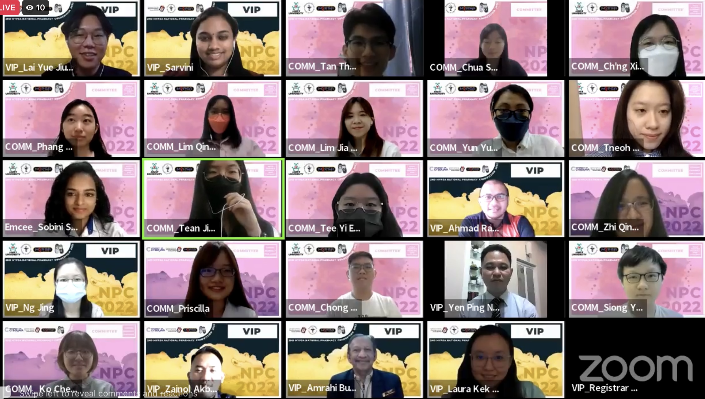 The registration period for the 2nd MyPSA National Pharmacy Competition (NPC) 2022 was from the 21st of February 2022 until the 6th of March 2022 for Phase 1 and from the 7th of March 2022 until the 13th of March 2022 for Phase 2. There are three challenges under NPC 2022, namely the Clinical Pharmacy Challenge (CC), Piala Aishah Compounding Challenge (PA), and Pharmacy Quiz Challenge (QC). Each of the challenges consists of different rules and regulations and the participants can participate in the challenges which they have expertise. Each of the challenges consists of three sessions, which are the preliminary round, semi-final round, and final round. Judges from various pharmacy schools, such as USM and UiTM, were invited to each of the challenges to ensure that the competition was fair and professional. Besides that, the committee had live streamed the whole competition session on the official Facebook page, and other students can watch the live session to enhance their knowledge and support their school members.