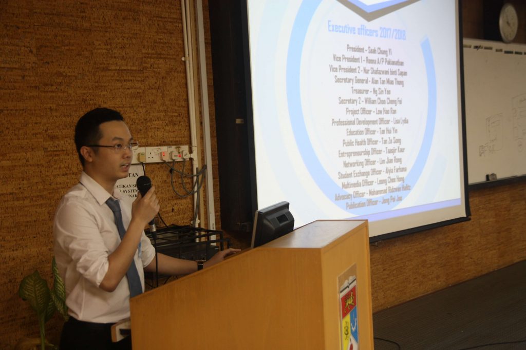 A few upcoming events such as ASEAN PharmNET 2017, Inter-faculty Sports Carnival (IFaSC), Operasi Khidmat Masyarakat (OPKIM), Pharmacy Awareness and Pharmnight were introduced to pharmacy students. Besides, the international annual events held by International Pharmaceutical Students’ Federation (IPSF) such as Asia Pacific Pharmaceutical Symposium 2017 (APPS) and Student Exchange Programme (SEP) were also introduced to students so that students can have a better understanding and prepare themselves before participating in these events.