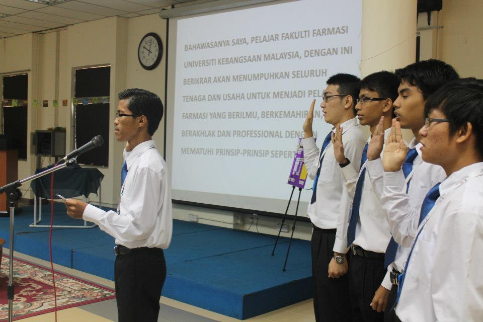 The event was organized by PMFFAR and all students, ranging from 1st year to 4th year, lecturers as well as the staffs from the Faculty of Pharmacy were invited to attend the meaningful ceremony. By 8.30am, all students, lecturers and staffs have arrived and taken their respective seats while waiting for the event to begin. At 9am, the Dean of Faculty of Pharmacy, , Prof. Dr. Ibrahim bin Jantan and the guests of honour arrived.