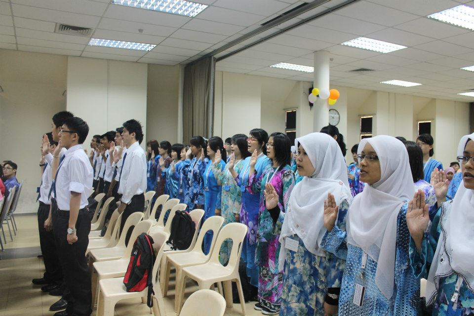The oath taking ceremony was then led by Ahmad Hanafi bin Azman. This event was held to make sure that the students could remember the promises they made to themselves, lecturers and families. The newcomers pledged whole-heartedly as the lecturers, staff and their seniors watched upon.