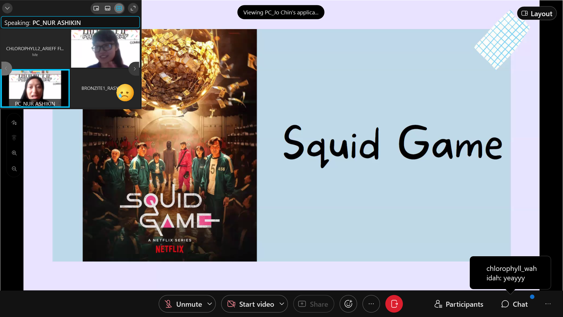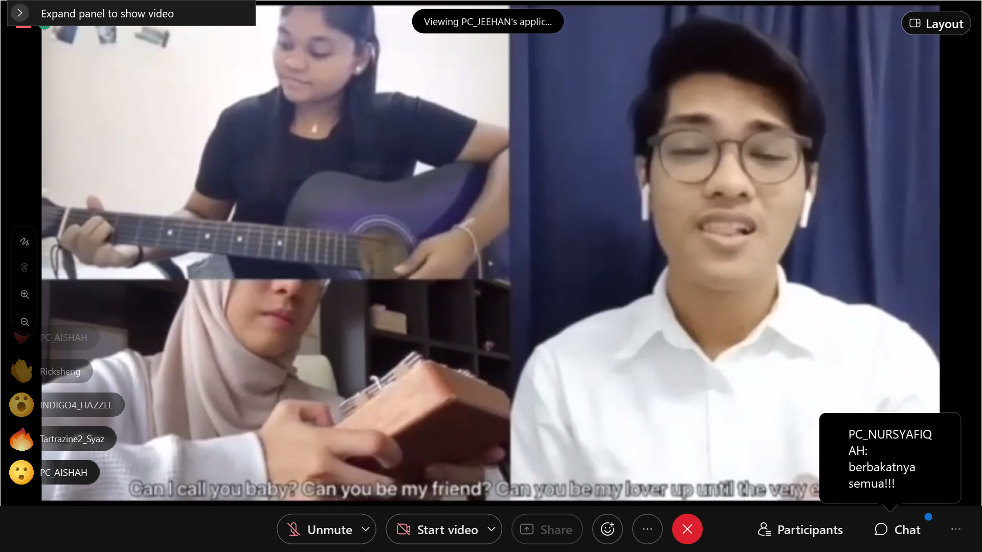 The event started with an aerobics dance video exercise which was pre-recorded aerobics by the committee. Next, the event was followed by the introduction of Instagram Story competition to participants. The event continued with participants joining into breakout rooms according to the rooms that they had been assigned to. There were a lot of games carried out during the event such as escape room, pictionary, ready to guess, charade, trivia questions and zoomed in.