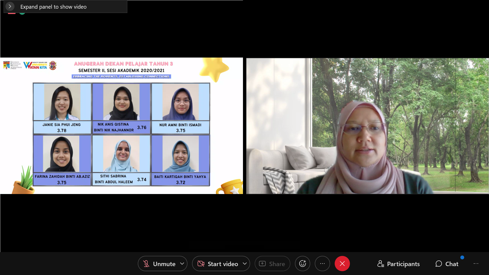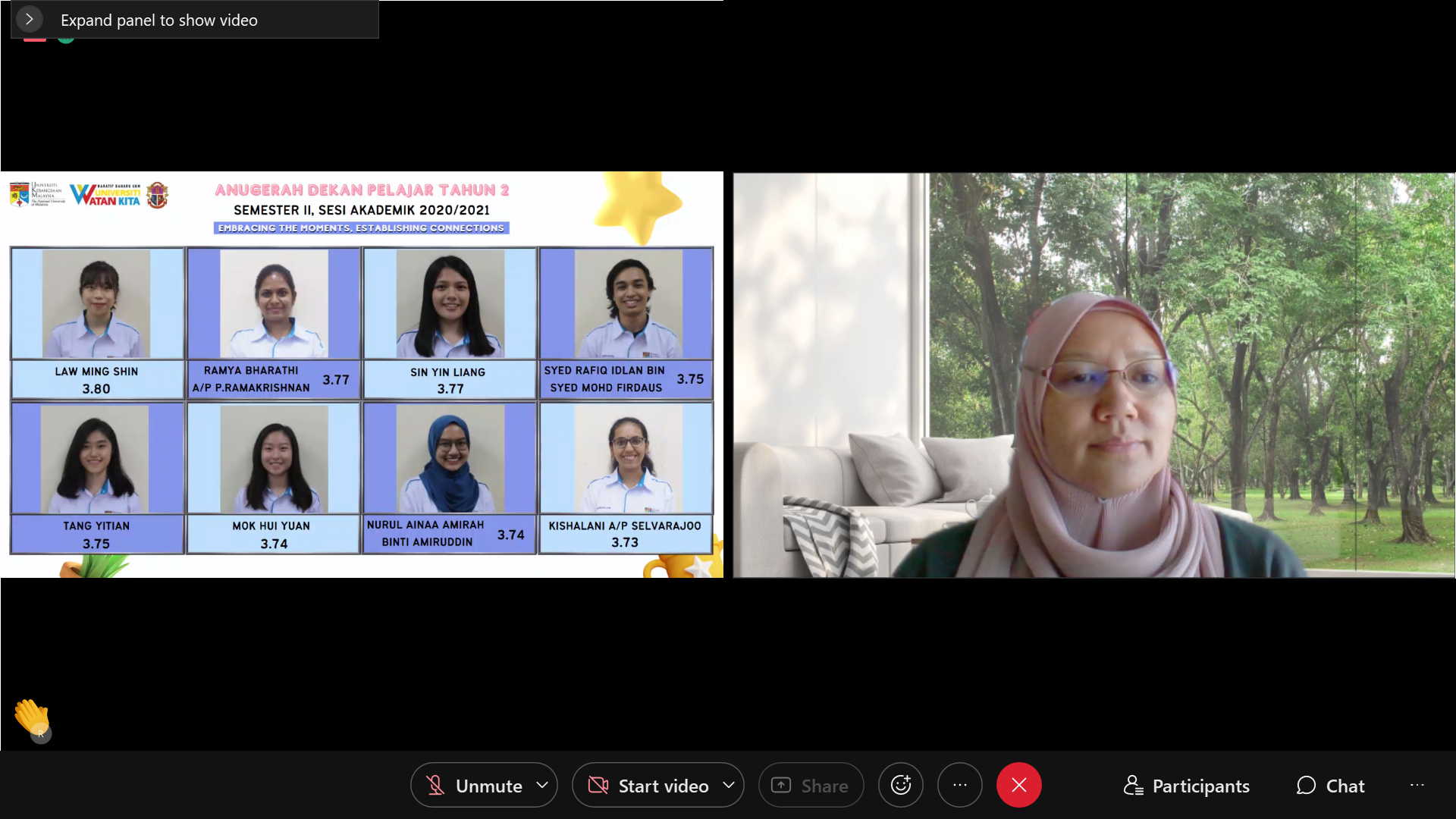 Apart from that, the event proceeded with a speech from the director of programme, Tan Rick Sheng which was the start of the closing ceremony. It was then followed by a speech from the Dean of Faculty of Pharmacy, Prof. Madya Dr. Mohd Makmor Bakry. In his speech, he congratulated all the committee for their good effort in organizing the event despite the challenges faced during the pandemic. After that, the ceremony continued with a gimmick video and performance videos by Year 1 students. After playing the performance videos, the ceremony lightened up with the announcement of the winner of the games which are Chlorophyll 1 team for channel A while Chlorophyll 3 team for channel B. Lastly, the ceremony continued with the Dean’s List Award and ended with the announcement of the winner of performance videos.