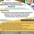 ONE POTENTIAL FULL TIME MSc STUDENT (Dr Dalina)