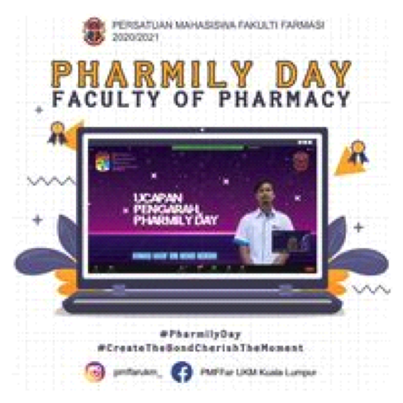 Persatuan Mahasiswa Fakulti Farmasi (PMFFar) UKM organized a Pharmily Day Program (11th of April 2021) – previously known as Interaction Day via Zoom. This program conducted online for the first time, involved all Faculty of Pharmacy students and staff.