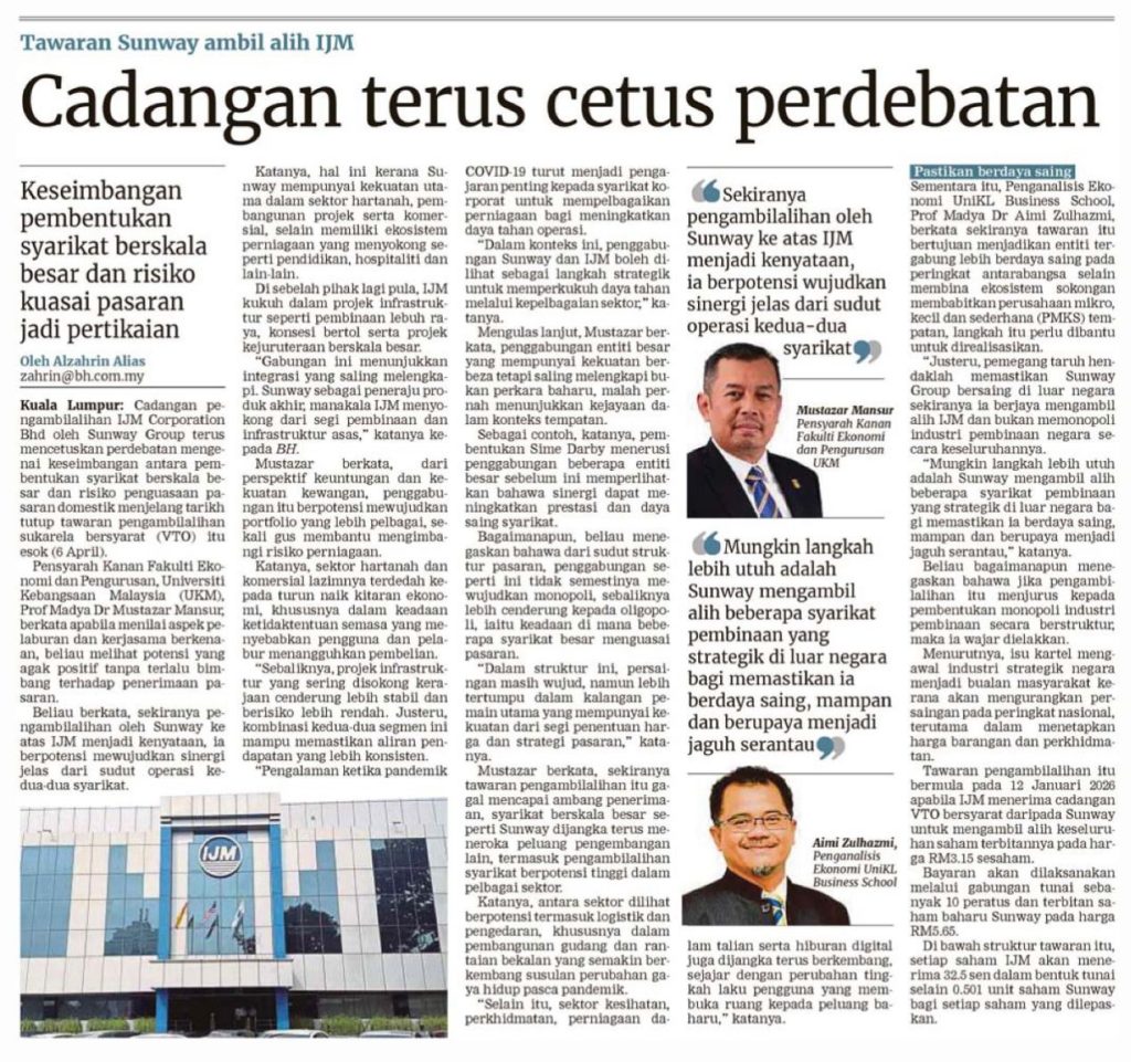 Cadangan Terus Cetus Perdebatan (Berita Harian) PM Dr Mustazar Mansur – FEP