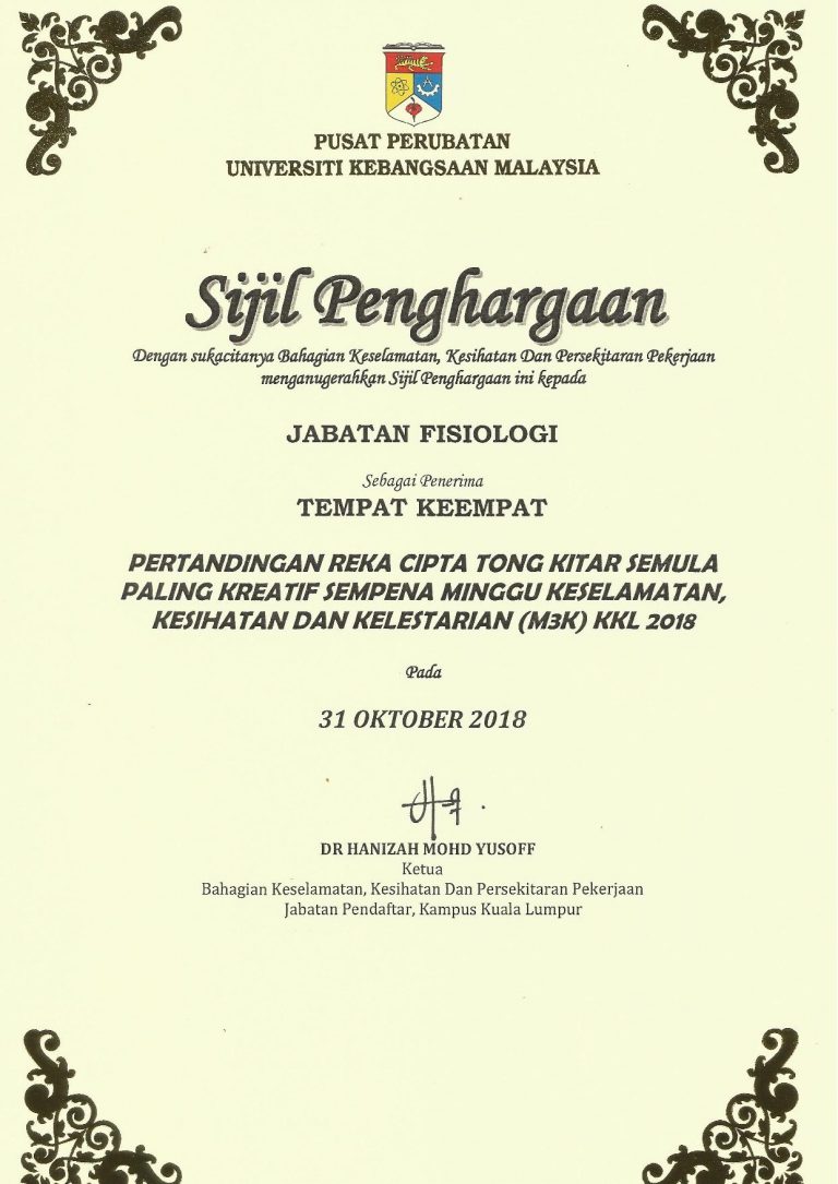 ANUGERAH PERSEKITARAN BERKUALITI (KATEGORI MAKMAL) - TEMPAT PERTAMA