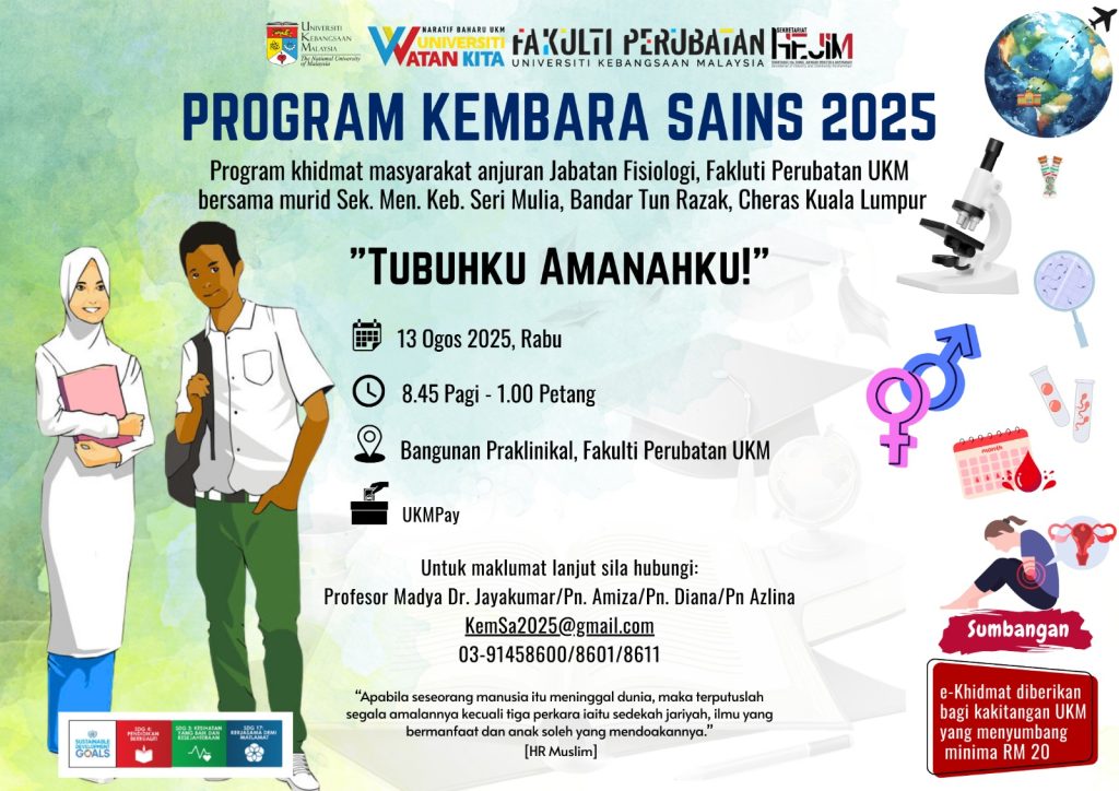 Program Kembara Sains 2025 ialah satu inisiatif pendidikan sains interaktif yang bertujuan untuk memberi pendedahan awal kepada pelajar sekolah mengenai kepentingan aplikasi sains reproduktif serta meningkatkan kesedaran tentang peranannya dalam kehidupan seharian melalui ceramah yang menarik, demonstrasi makmal dan aktiviti interaktif. Program ini memperkenalkan konsep sains secara mudah difahami dan sesuai dengan peringkat umur. Ia menyokong matlamat pendidikan STEM negara serta menggalakkan amalan kesihatan yang bertanggungjawab dan berpengetahuan.