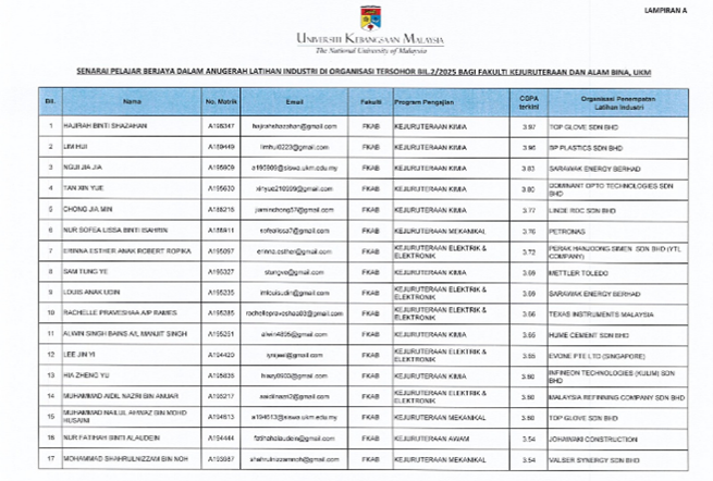 • This program provides motivation and encouragement for students from B40 families to excel in the industry and pursue professional excellence during their industrial training.