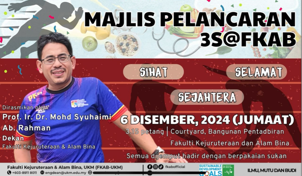 The 3S@FKAB Program is a long-term initiative to ensure health, safety, and well-being among faculty members. It enhances productivity, fosters a healthy culture, and creates a more conducive environment for work and study.