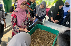 The programme, organised by the Jabatan Pengurusan Sisa Pepejal dan Pembersihan Awam MPAJ, included four participating schools: Pandan Indah, Taman Keramat, Bukit Indah, and Seri Keramat National Secondary Schools. Activities featured a briefing on composting using Anaerobic Digester and Black Soldier Fly (BSF) machines, conducted by MPAJ’s Assistant Health and Environment Officer and UKM’s Dr. Irfana Kabir Ahmad.