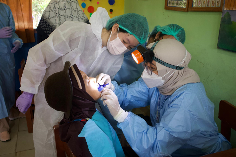 Supported by clinical staff and four students from Universitas Hasanuddin (UNHAS), activities included dental check-ups, a puppet show, coloring contests, and toothbrushing training.