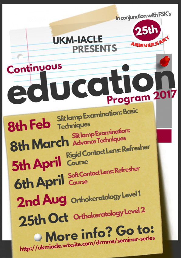 In conjunction with the Celebration of 25th Anniversary of Faculty of Health Sciences, UKM-IACLE will hold a series of workshops/ seminars (Continuous Education Trainings (CET)) …