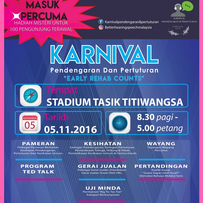 Program : Hearing and Speech Carnival ” Early Rehab Counts”. Date : 5th November 2016 Time …
