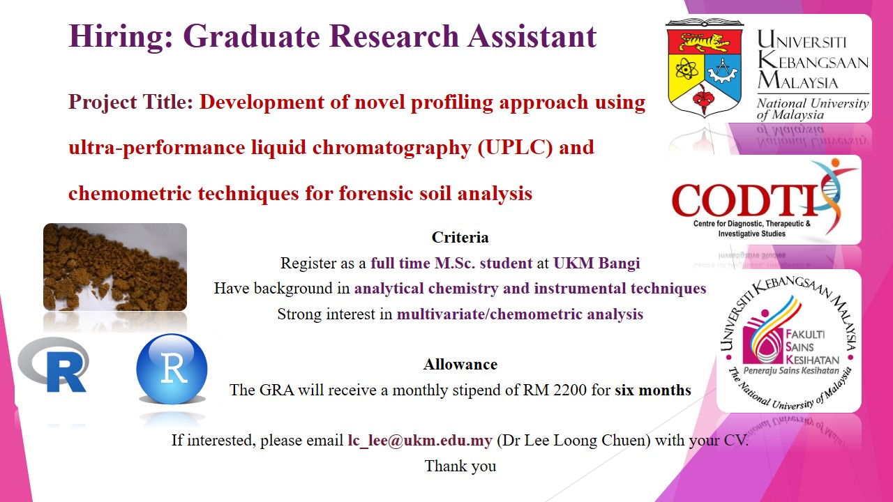 Come and join us now. We were looking for a dedicated Graduate Research Assistant (GRA) who is interested in Chemical Analysis/ Forensic Science/ Applied Statistic. …