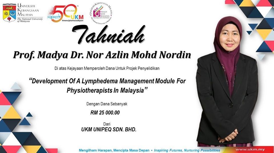 Faculty want to congratulate Associate Professor Dr Nor Azlin Mohd Nordin researcher fromĀ Center for Rehabilitation and Special Needs for receiving industrial grant with UKM UNIPEQ SDN BHD industry. The research project entitled “Development of A Lymphedema Management Module for Physiotherapists in Malaysia”. Good job !!