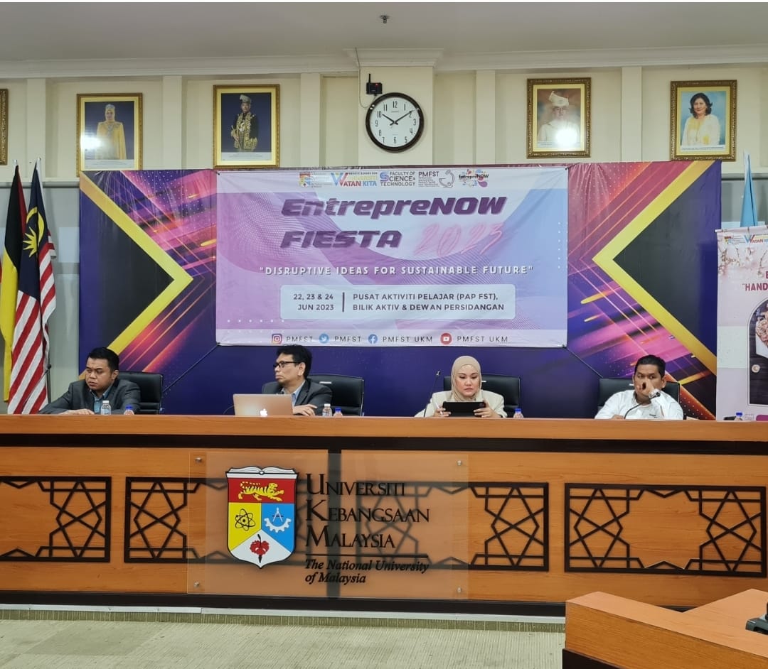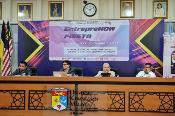 Alumnus of the Actuarial Science Program, Department of Mathematical Sciences in 2006, Mr. Mohd Syafie Borhan, shared his knowledge and entrepreneurial experiences with FST students during the Entrepreneur Forum: Disruptive Idea for Sustainable Future session at EntrepreNow Fiesta, organized by the Faculty of Science and Technology, UKM Entrepreneurship Committee.