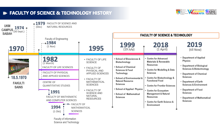 A warm welcome to all visitors who browse our website of the Faculty of Science and Technology (FST), Universiti Kebangsaan Malaysia (UKM). Although FST was only established on 19 July 1999, the existence of science studies at UKM started way 51 years ago when UKM was established. This indicates the timeline of FST’s involvement in science for education and research began 51 years ago when the original Faculty of Science was established in 1970.