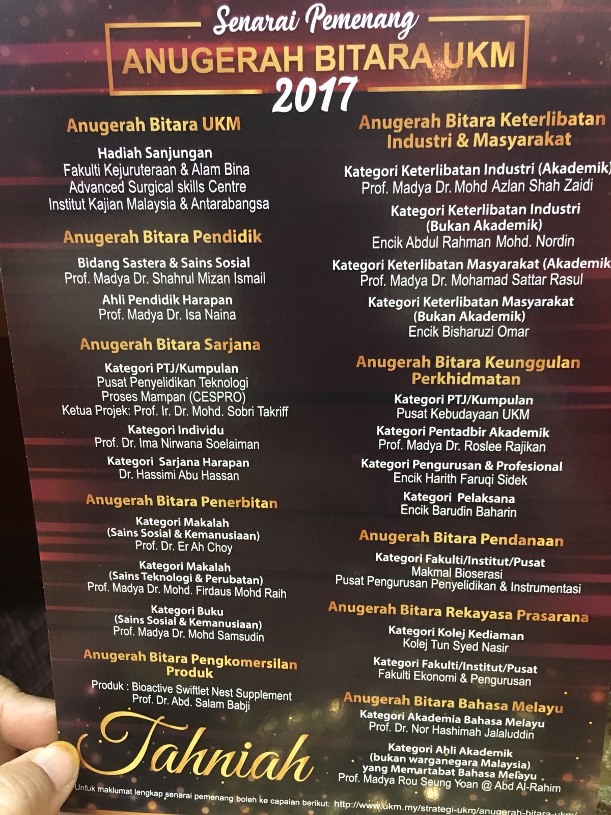28 November 2017: Ahli akademia FUU mencatatkan sejarah sekali lagi apabila pensyarah kanan Prof. Madya. Dr. Shahrul Mizan Ismail memenangi Anugerah Bitara UKM 2017. Dr. Shahrul telah memenangi Anugerah Bitara Pendidik kategori Bidang Sastera dan Sains Sosial dan ini merupakan kejayaan beliau dalam masa seminggu selepas memenangi tempat pertama Anugerah Pemikiran dan Rekabentuk Semula Pendidikan Tinggi anjuran Kementerian Pendidikan Tinggi (KPT) pada 20 November yang lalu. Dr. Shahrul Mizan merupakan pensyarah Tatacara Sivil dan telah menerbitkan beberapa buah buku termasuk membangunkan kursus MOOC (portal Open learning UKM) bertajuk ‘Mengenal Mahkamah di Malaysia’. Tahniah dan syabas diucapkan buat Dr Shahrul Mizan #SoaringUpwards.