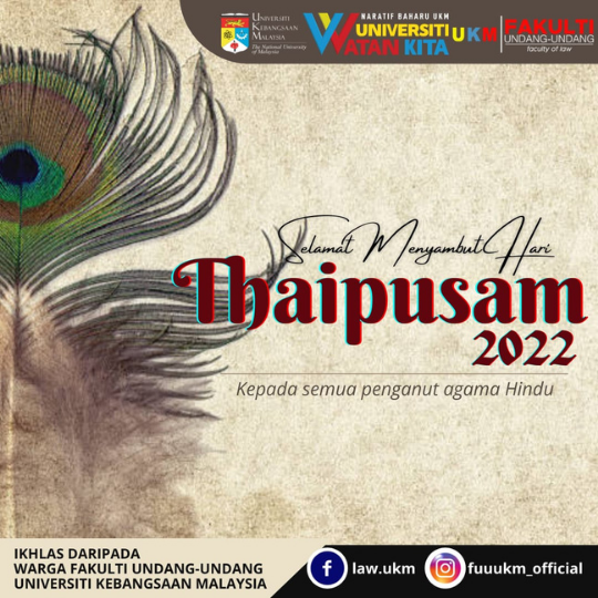 17 Januari 2022 |HARI THAIPUSAM 2022| Selamat Menyambut Hari Thaipusam kepada semua penganut agama Hindu. Semoga ia diraikan dengan penuh gembira oleh seluruh rakyat Malaysia. …