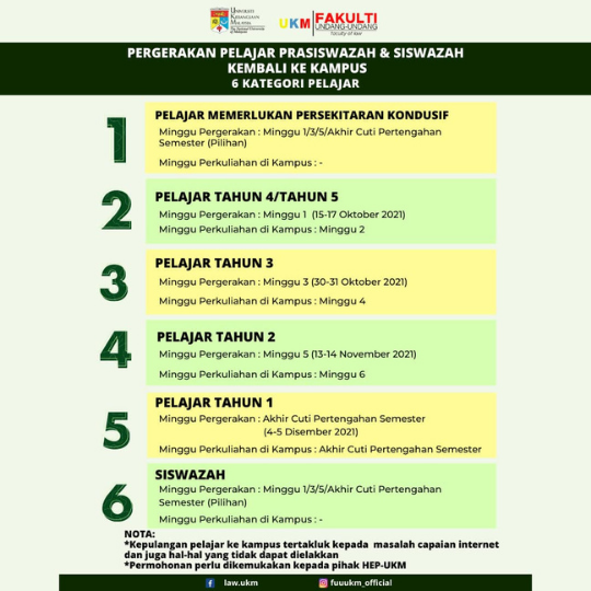 04 Oktober 2021: Dekan dan Warga Fakulti Undang-Undang, UKM ingin mengucapkan syabas dan tahniah kepada pelajar baharu yang berjaya menyambung pengajian di Universiti Kebangsaan Malaysia. …