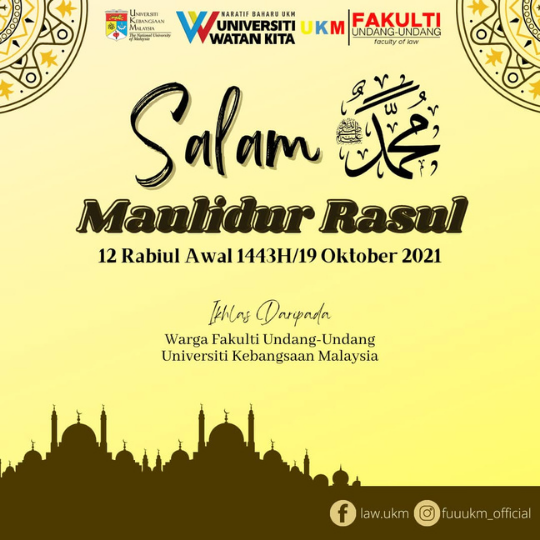 19 Oktober 2021: Dekan dan seluruh warga Fakulti Undang-undang, UKM mengucapkan Salam Maulidur Rasul buat semua umat Islam. Sama-samalah kita mencontohi sifat keperibadian Nabi Muhammad …