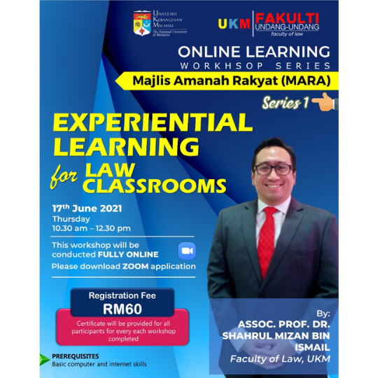 Online Learning Workshop Majlis Amanah Rakyat (MARA): Experiental Learning for Law Classroom Series 1 Date: 17 June 2021 (Thursday) Time: 10.30pm – 12.30pm