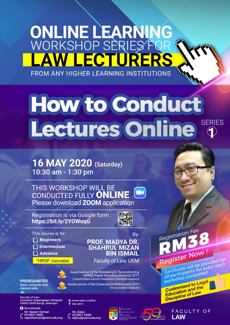 Registration Series 1 : How To Conduct Lectures Online (Online Learning Workshop Series for Law Lecturers from any Higher Learning Institutions) Date : 16 May …