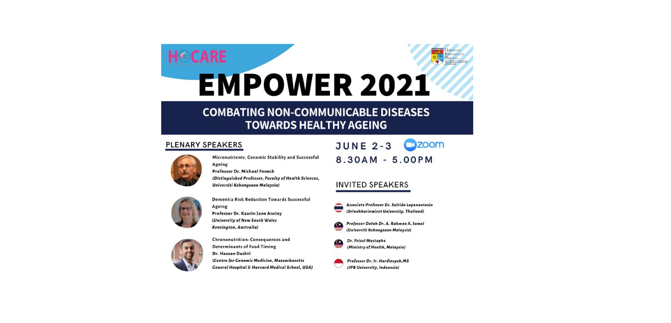 EMPOWER 2021 : COMBATING NON-COMMUNICABLE DISEASES TOWARDS HEALTHY AGEING 2nd & 3rd June 2021 (Wednesday & Thursday) 8.30am-5.30pm (2nd June 2021) & 8.30am-1.00pm (3rd …