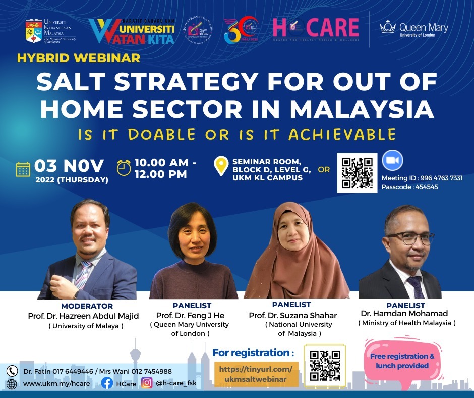 We are pleased to inform that the Centre for Healthy Ageing & Wellness, Faculty of Health Sciences, National University of Malaysia in collaboration with Queen Mary University of London is organizing a FREE Hybrid Webinar as per details below:
