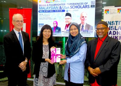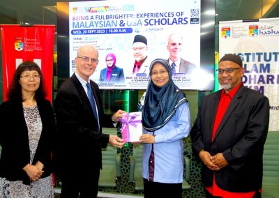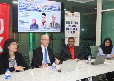 Alhamdulillah on 20th Sept 2023, A sharing session “Being a Fulbrighter: Experiences of Malaysian and USA Scholars” has been successfully held. This program is organized by Institute of Islam Hadhari, UKM and Chair of Excellence Sheikh Abdullah Fahim, Hadhari UKM.