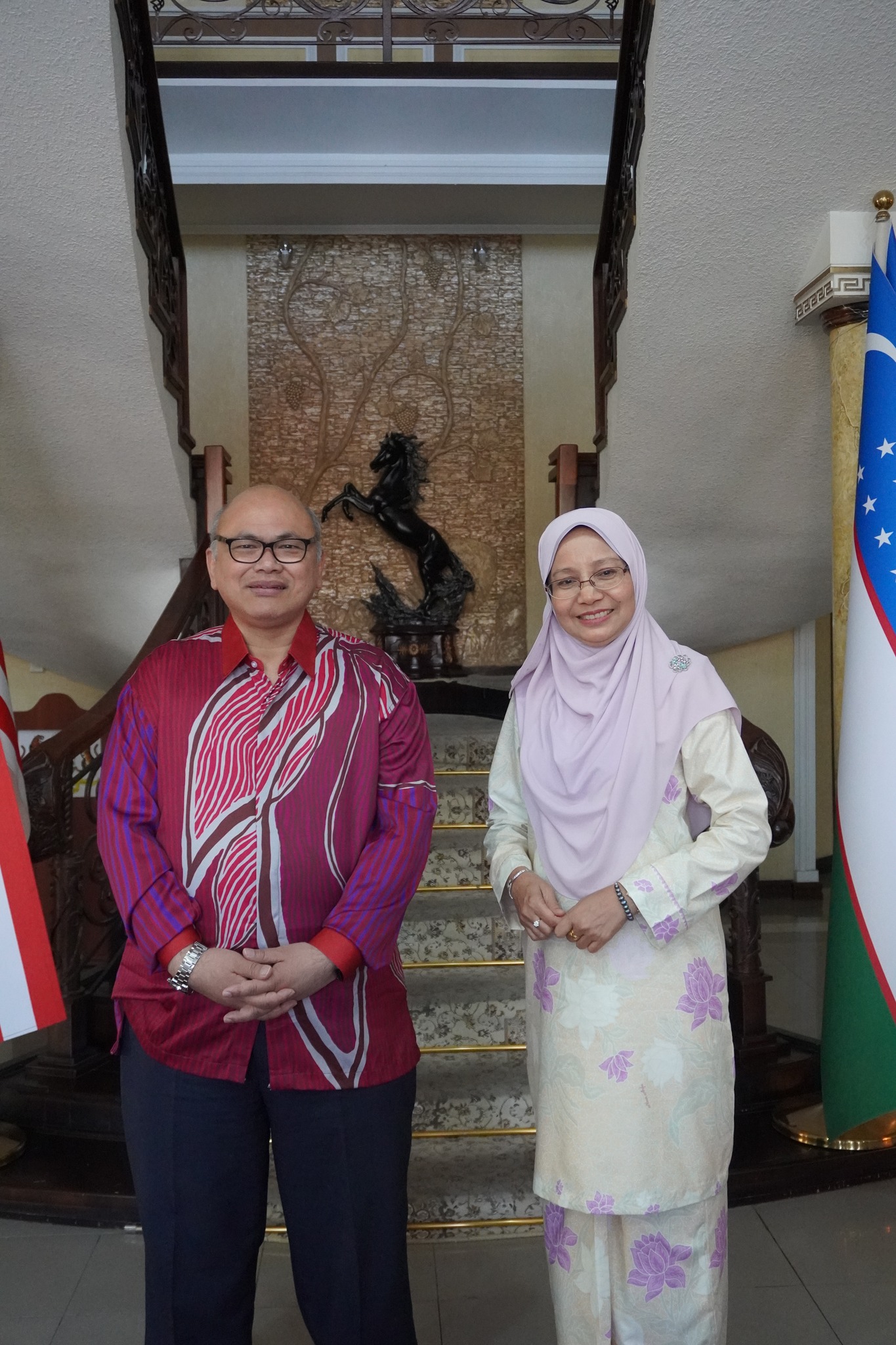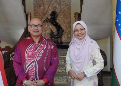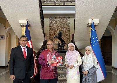 Kami sangat berbesar hati disambut baik oleh Tuan Yang Terutama Ilham Tuah Ilias, Duta Besar Malaysia di Uzbekistan bersama Setiausaha Utama beliau iaitu Pn. Aimi Ismail.