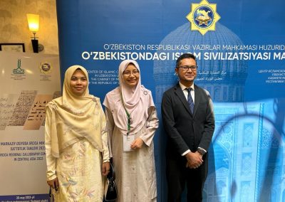 Prof. Dato’ Dr. Fariza Md Sham FASc, Pengarah Institut Islam Hadhari, UKM telah dijemput memberi ucapan dalam majlis perasmian bagi mewakili delegasi daripada Malaysia dalam International Scientific-Practical Conference yang berlangsung pada 30-31 Mei 2023 yang lalu anjuran Center of Islamic Civilization In Uzbekistan.