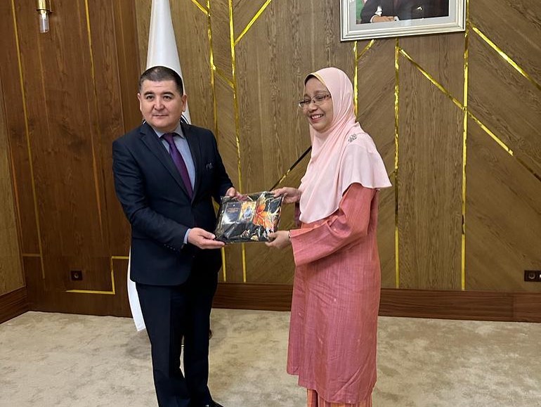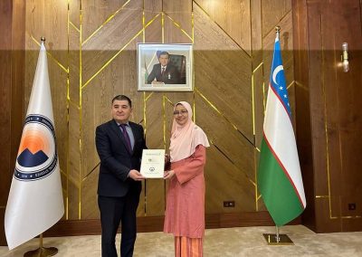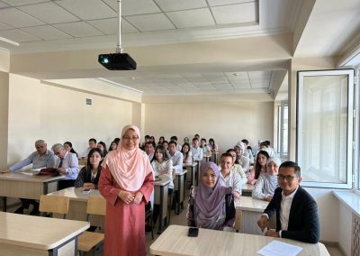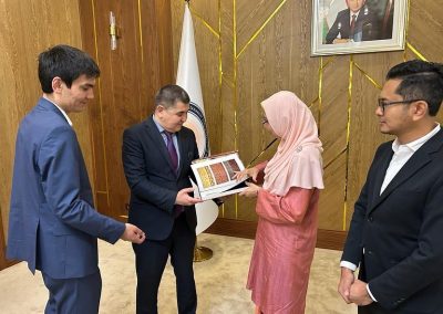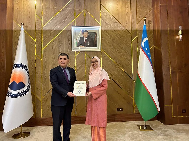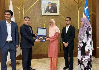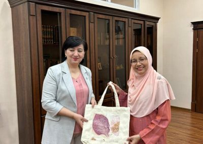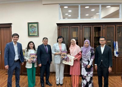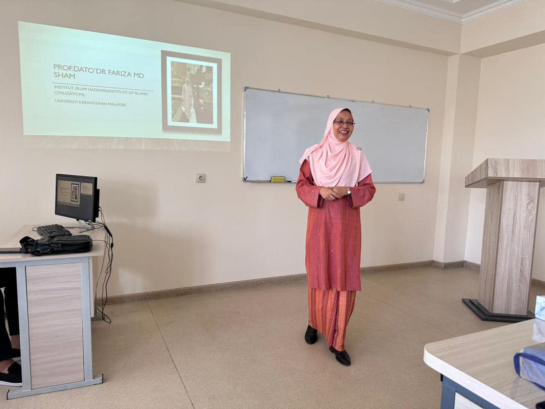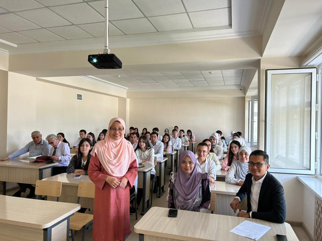 Prof. Dato’ Dr. Fariza Md Sham FASc yang juga dilantik sebagai Profesor Pelawat 2023 memanfaatkan lawatan penyelidikan ini dengan mengadakan syarahan di Tashkent State University of Oriental Studies pada hari yang sama.