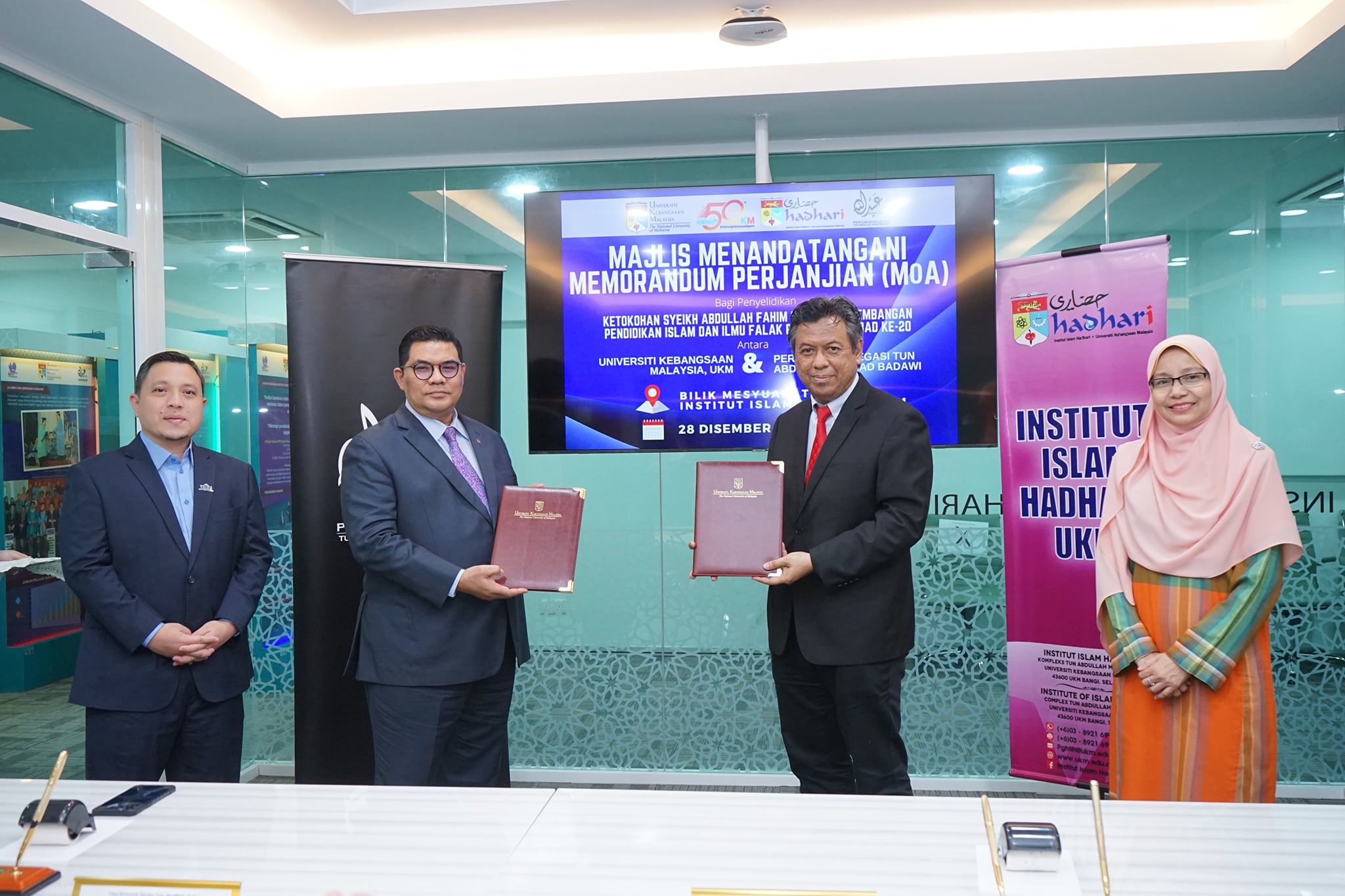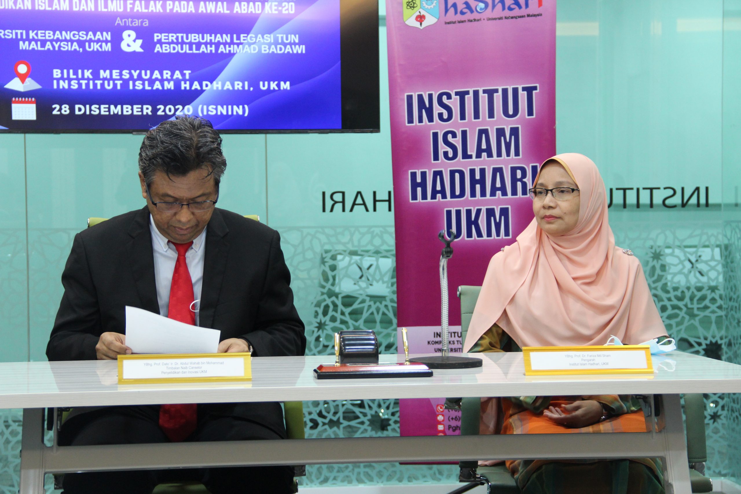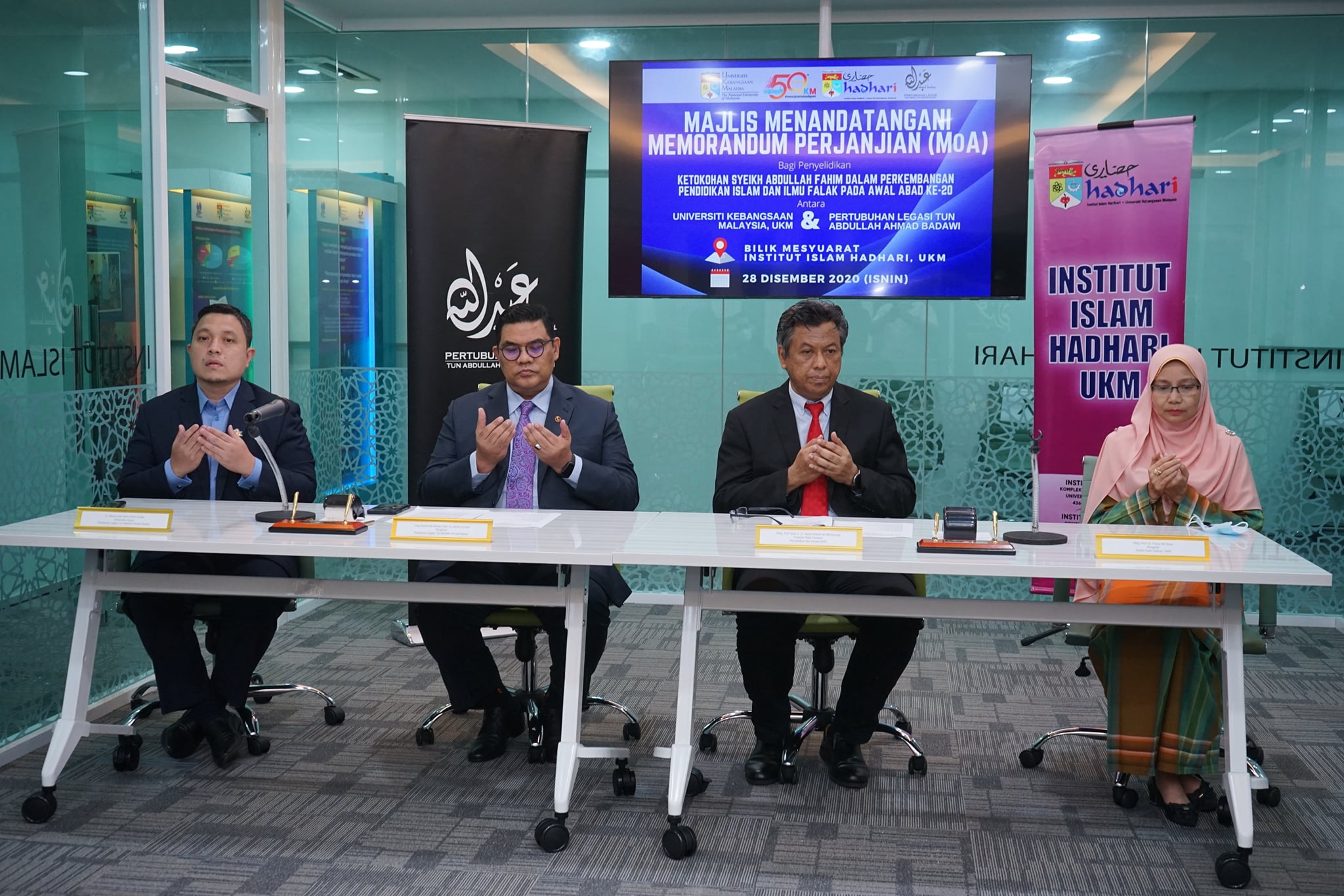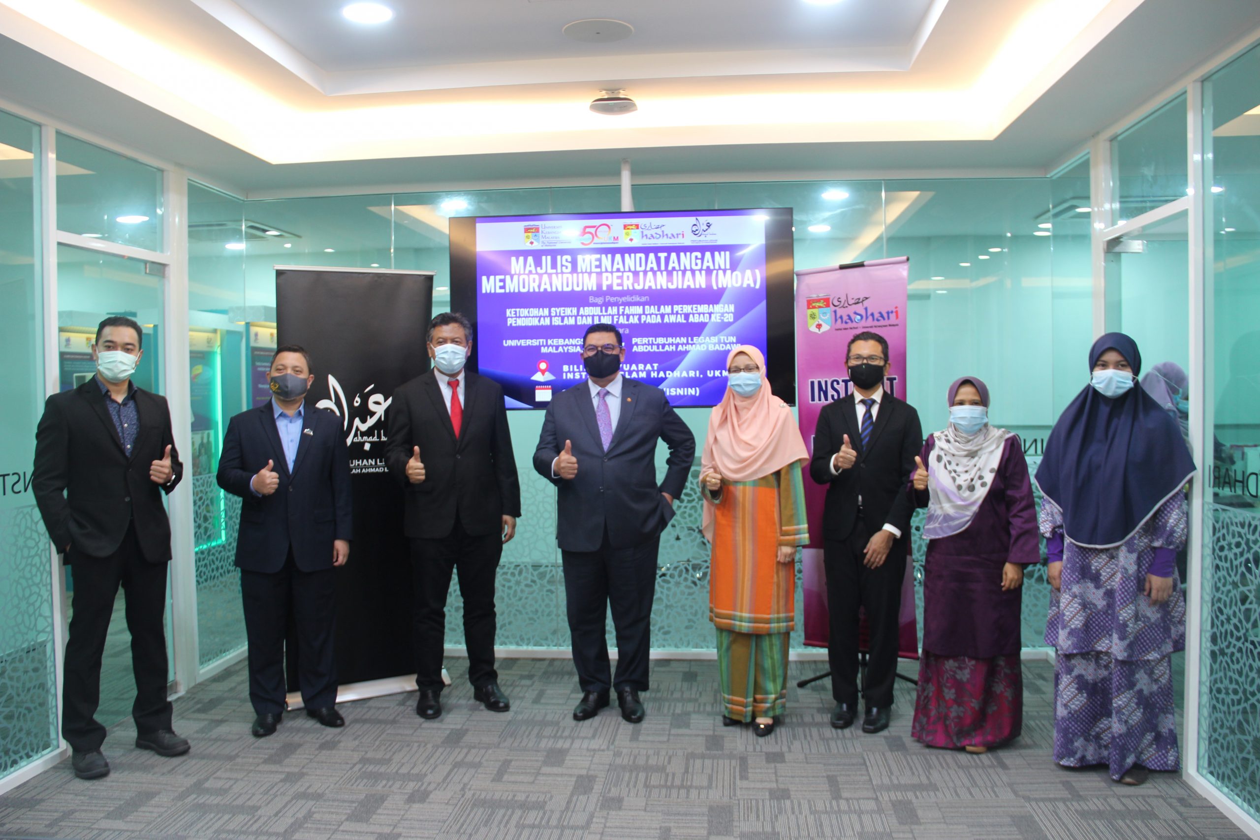 Majlis ini ditandatangani antara Timbalan Naib Canselor Penyelidikan dan Inovasi, Prof. Dato’ Ir. Dr. Abdul Wahab Mohamad dan Pengerusi Pertubuhan Legasi Tun Abdullah Ahmad Badawi, Senator Dato’ Hj. Jefridin Hj. Atan dan disaksikan oleh Pengarah Institut Islam Hadhari, Prof Dr Fariza Md Sham dan Felo Bersekutu Institut Islam Hadhari, Dr. Muhammad Hakimi Mohd Shafiai. Tetamu lain yang hadir ialah Prof Madya Dr Mohd Al Adib Samuri, Timbalan Pengarah Institut Islam Hadhari, Prof Madya Dr Ermy Azziaty Rozali (Ketua Projek), Dr. Syaidatun Nazirah Abu Zahrin (Ahli Projek), Dr. Mohd Hafiz Safiai (Ahli Projek).
