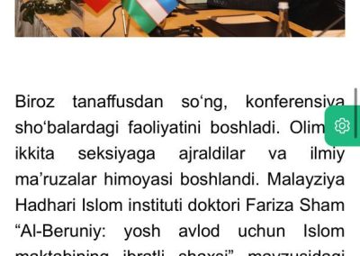 Alhamdulillah Prof. Dato’ Dr. Fariza Md Sham FASc., Director of Institute of Islam Hadhari, UKM again was invited to deliver a lecturer as a visiting professor at the Republic of Uzbekistan and during this visitation, we take this opportunity on 26th Sept 2023, to do a few more discussion and confirmation, and Alhamdulillah both parties agreed to proceed to sign the Memorandum of Understanding (MoU) between Institute of Islam Hadhari, Universiti Kebangsaan Malaysia and Imam Tarmizi International Scientific Research Center.