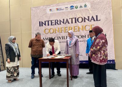 Alhamdulillah, pada 5 Ogos 2024 telah termeterainya Memorandum Persefahaman (MoU) antara Institut Islam Hadhari, UKM dan UIN Syarif Hidayatullah Jakarta, Indonesia. Majlis ini ditandatangai antara Prof. Dato’ Dr. Fariza Md Sham, FASc, Pengarah Institut Islam Hadhari, UKM dan Prof. Asep Saepudin Jahar, Ph.D., (Rektor, UIN Syarif Hidayatullah Jakarta, Indonesia).