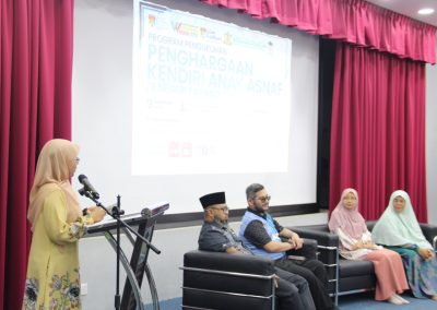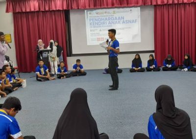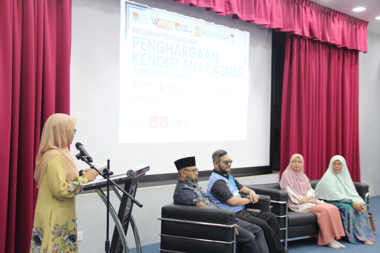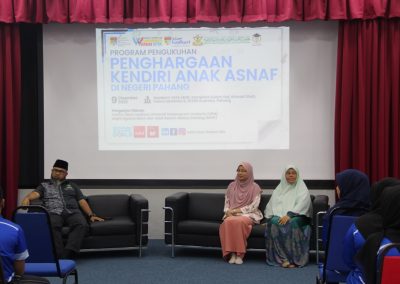 Pada 09 Disember 2023 telah berlangsung Program Pengukuhan Penghargaan Kendiri Anak Asnaf di Negeri Pahang. Seramai 31 orang peserta yang terdiri daripada anak asnaf (berumur 13 sehingga 17 tahun) telah terlibat dalam program ini. Aktiviti dimulai dengan bacaan doa oleh saudara Muhammad Al Mustaqeem Irsyaduddin Bin Mohd Idros, pelajar Universiti Islam Pahang Sultan Ahmad Shah (UniPSAS) yang juga fasilitator program. Seterusnya sesi ucapan aluan oleh YBhg. Prof. Dato’ Dr. Fariza Md. Sham, FASc, Pengarah, Institut Islam Hadhari, UKM dan YBrs. Dr. Haji Asmadi Bin Abdul Rahman, Timbalan Ketua Pegawai Eksekutif (Baitulmal dan Operasi), MUIP serta taklimat program oleh YBrs. Dr. Ahmad Irdha Mokhtar, Felo Bersekutu HADHARI merangkap Pengerusi program. Setelah selesai sesi ucapan aluan dan taklimat, peserta dan para penceramah, fasilitator dan ahli jawatankuasa bergambar kenang-kenangan.